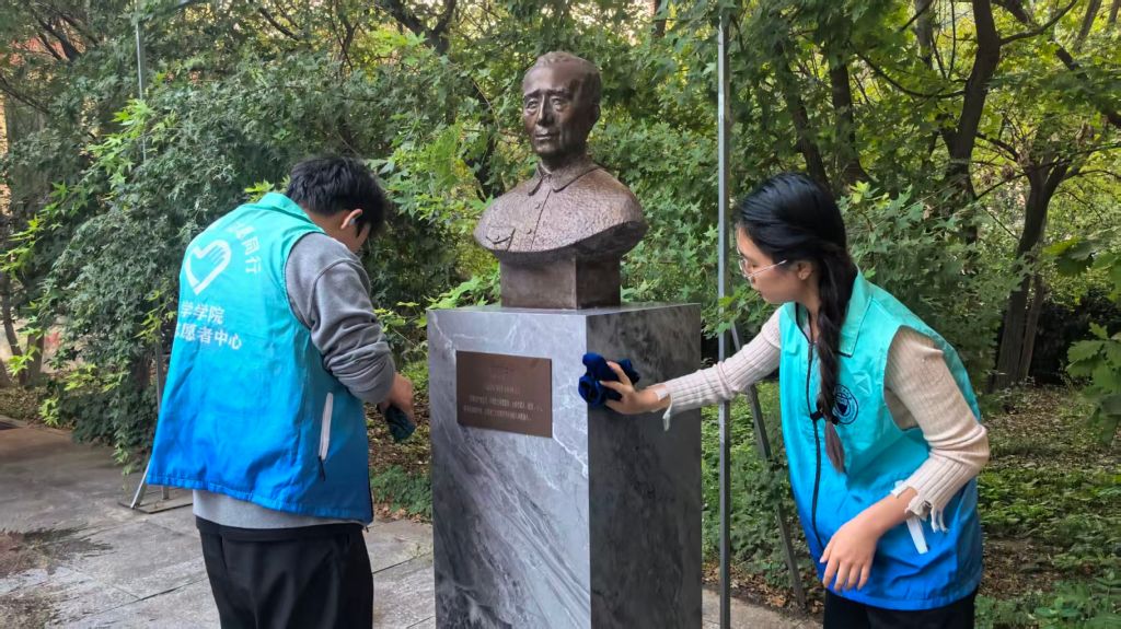 活动当日,阳光洒在静谧的学术广场上,常师贞先生的铜像在晨曦中更显庄重与慈祥。来自永利官网各年级的志愿者们,精神饱满,早早地在铜像前集合。在活动负责人的简要动员与任务分工后,一场充满热情的清洁行动随即展开。志愿者们分工有序,配合默契,展现出极高的效率与团队协作精神。
