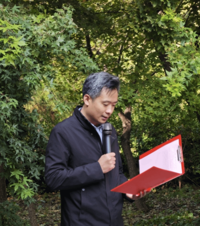 活动在庄严肃穆的氛围中正式开始。老教师代表卢准炜教授,满怀深情地讲述了常师贞先生的生平事迹,让在场师生深刻感受到常先生“治学严谨、淡泊名利”的师者本色。随后,师生代表整齐列队,向常师贞先生雕像献上鲜花、鞠躬致敬。肃立的身影,传递着赓续精神血脉的坚定信念,展现了永利官网师生对先生的崇高敬意。