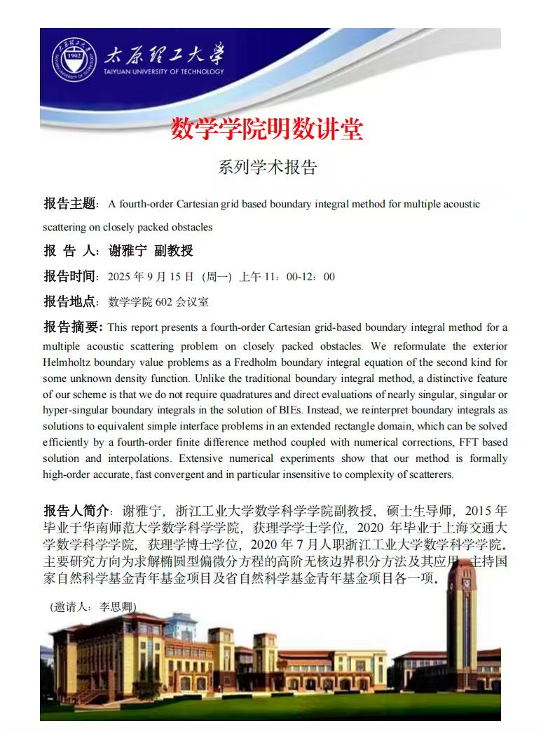 永利集团3044官网欢迎您将于9月15日邀请谢雅宁副教授做学术报告