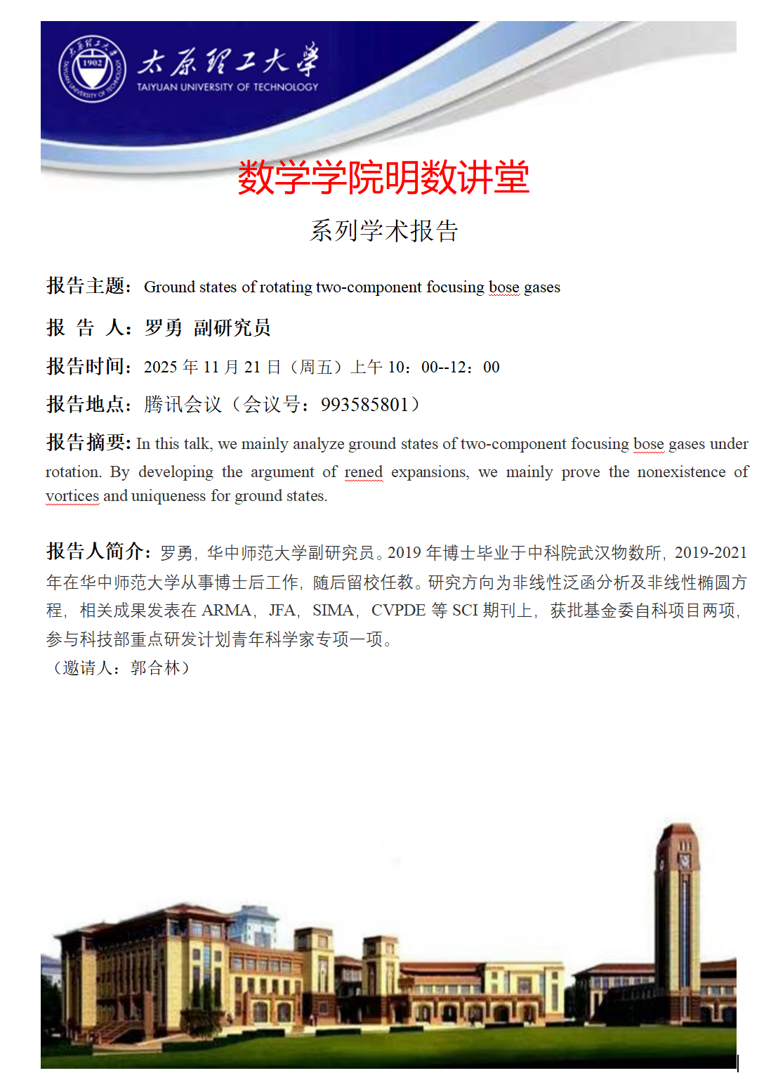 永利集团3044官网欢迎您将于11月21日邀请罗勇副研究员做学术报告