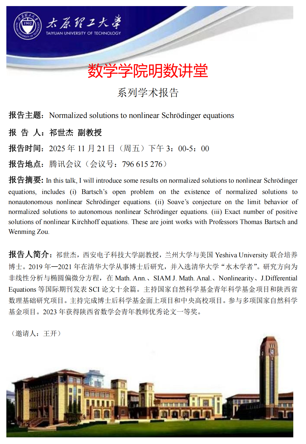 永利集团3044官网欢迎您将于11月21日邀请祁世杰副教授做学术报告