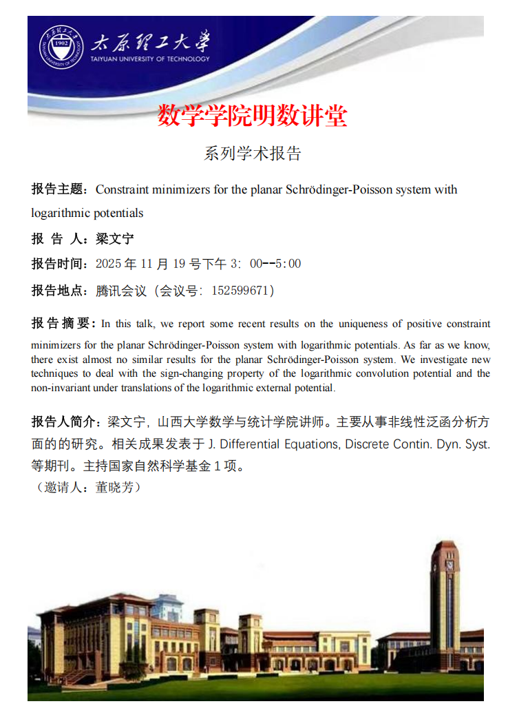 永利集团3044官网欢迎您将于11月19日邀请梁文宁做学术报告