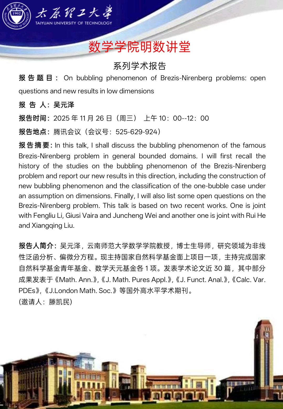 永利集团3044官网欢迎您将于11月26日邀请吴元泽教授做学术报告