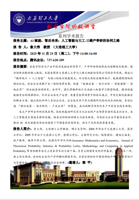永利集团3044官网欢迎您将于11月25日邀请鲁大伟教授做学术报告