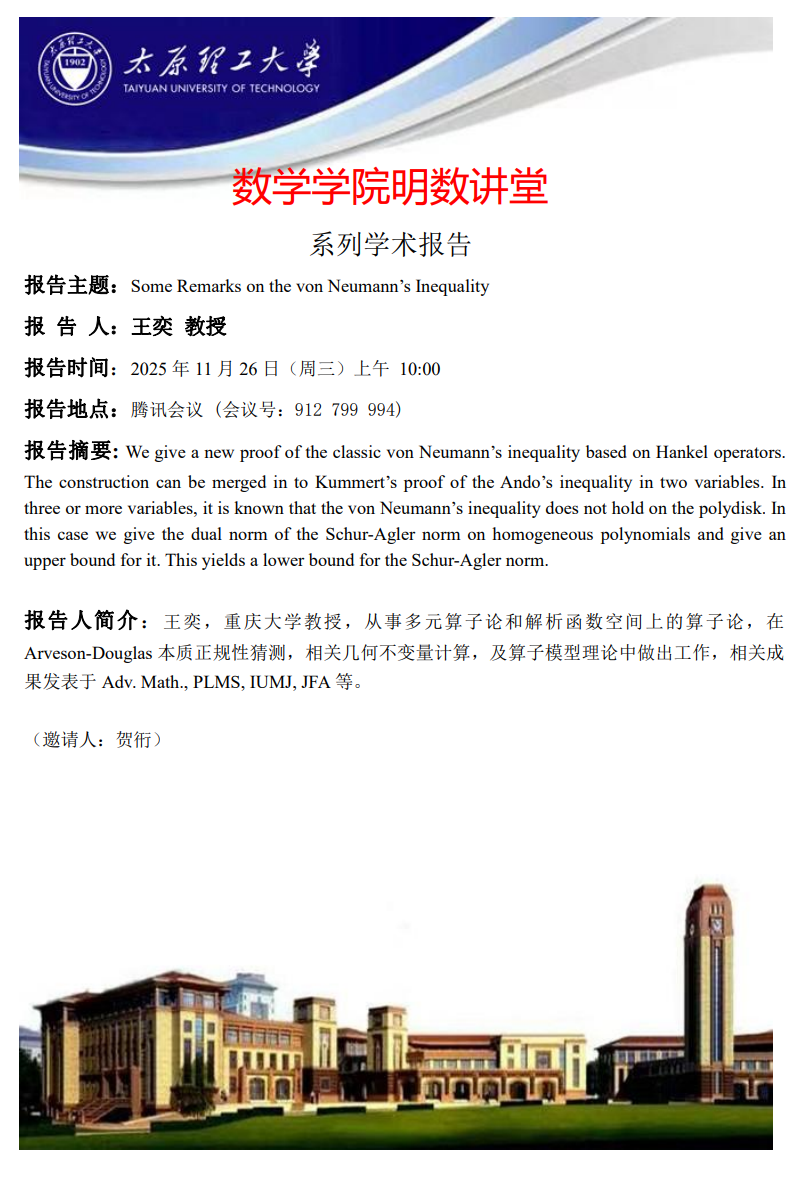 永利集团3044官网欢迎您将于11月26日邀请王奕教授做学术报告