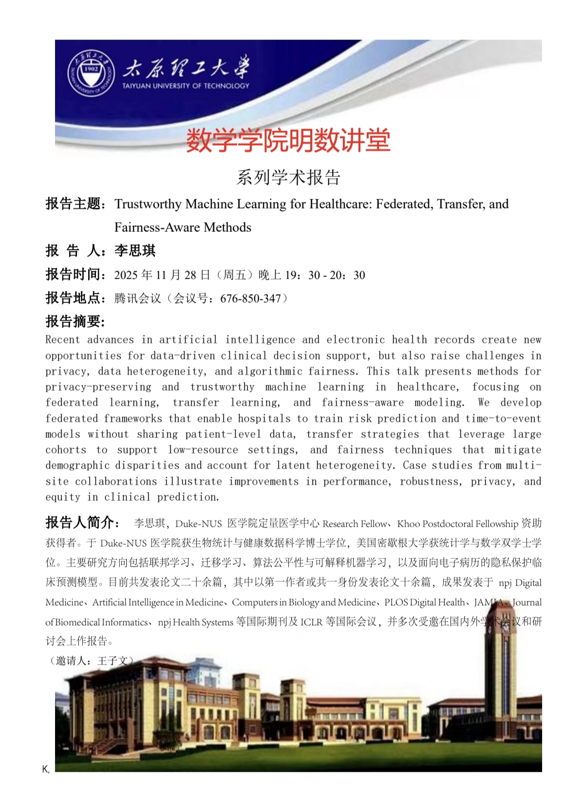 永利集团3044官网欢迎您将于11月28日邀请李思琪做学术报告